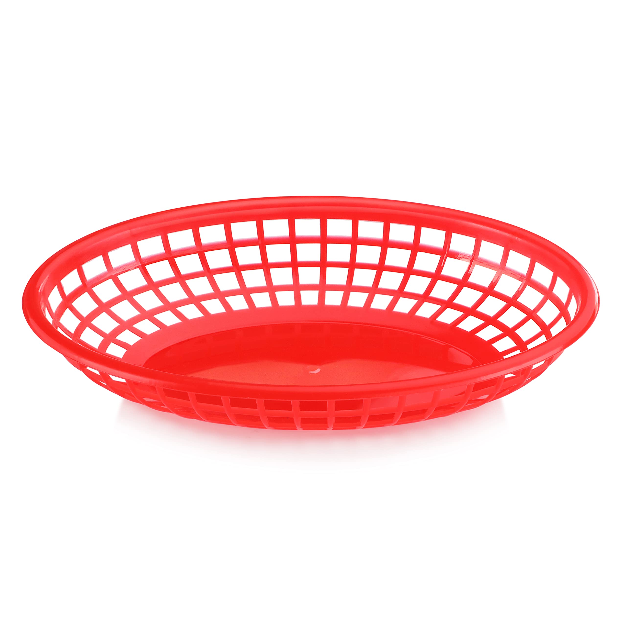 - 9 1/4 x 6 Inch Oval fast food baskets in red, perfect for burgers, fries, and sandwiches.
